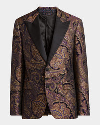 - Etro evening jacket showcasing an ornate paisley jacquard with an exquisite sheen - Contrast peak lapels - Single-button front - Chest welt pocket - Hip flap pockets - Internal breast pocket - Long sleeves - Four-button cuffs - Single-vented back - Silk/polyester/acetate - Lining: Viscose - Professional cleaning recommended - Made in Italy