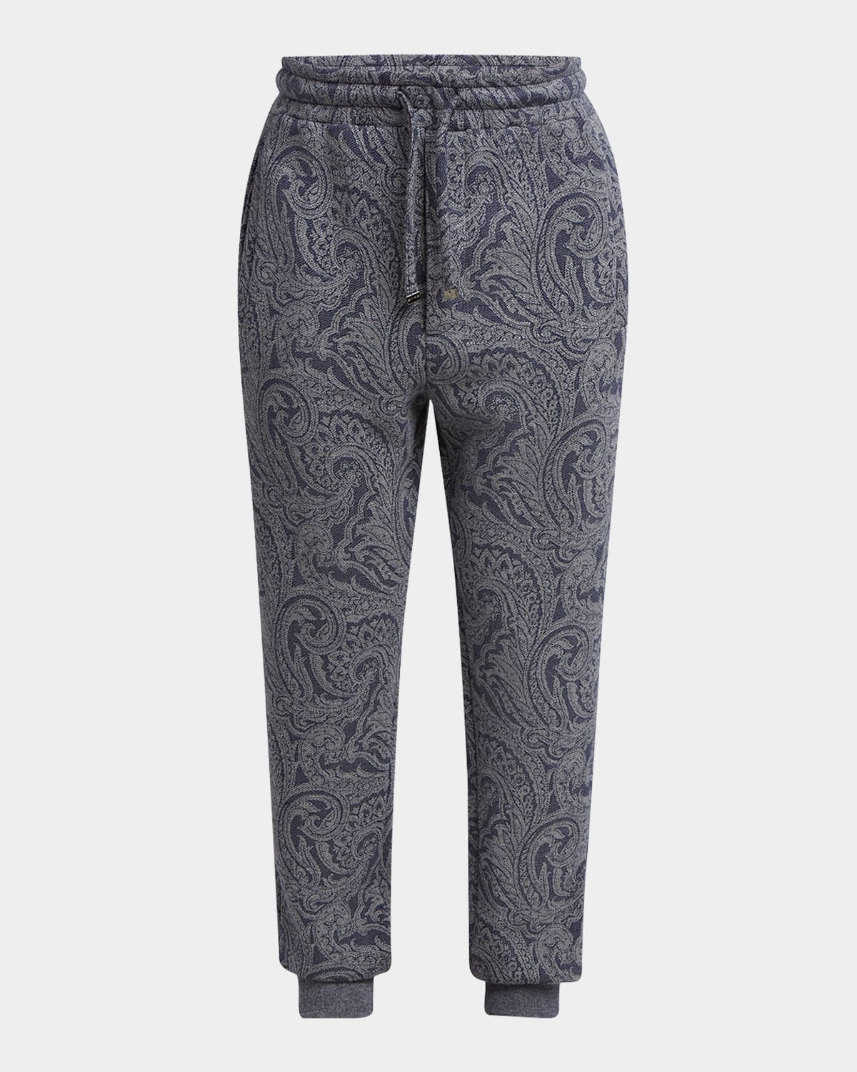 - Etro sweatpants showcasing an ornate paisley pattern for a subtle elegance - Regular rise - Side slip pockets - Back welt pocket with embroidered logo - Tapered legs - Ribbed cuffs - Drawstring waistband - Branded drawcord ends - Pull-on style - Viscose/nylon - Professional cleaning recommended - Made in Italy