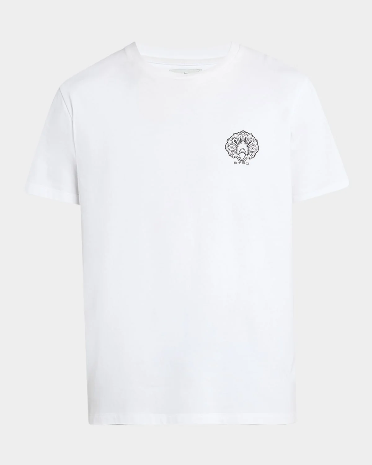 - Etro T-shirt with small graphic logo at chest - Crew neckline - Short sleeves - Pullover style - Cotton - Made in Italy - Model is 6'1"/185cm.