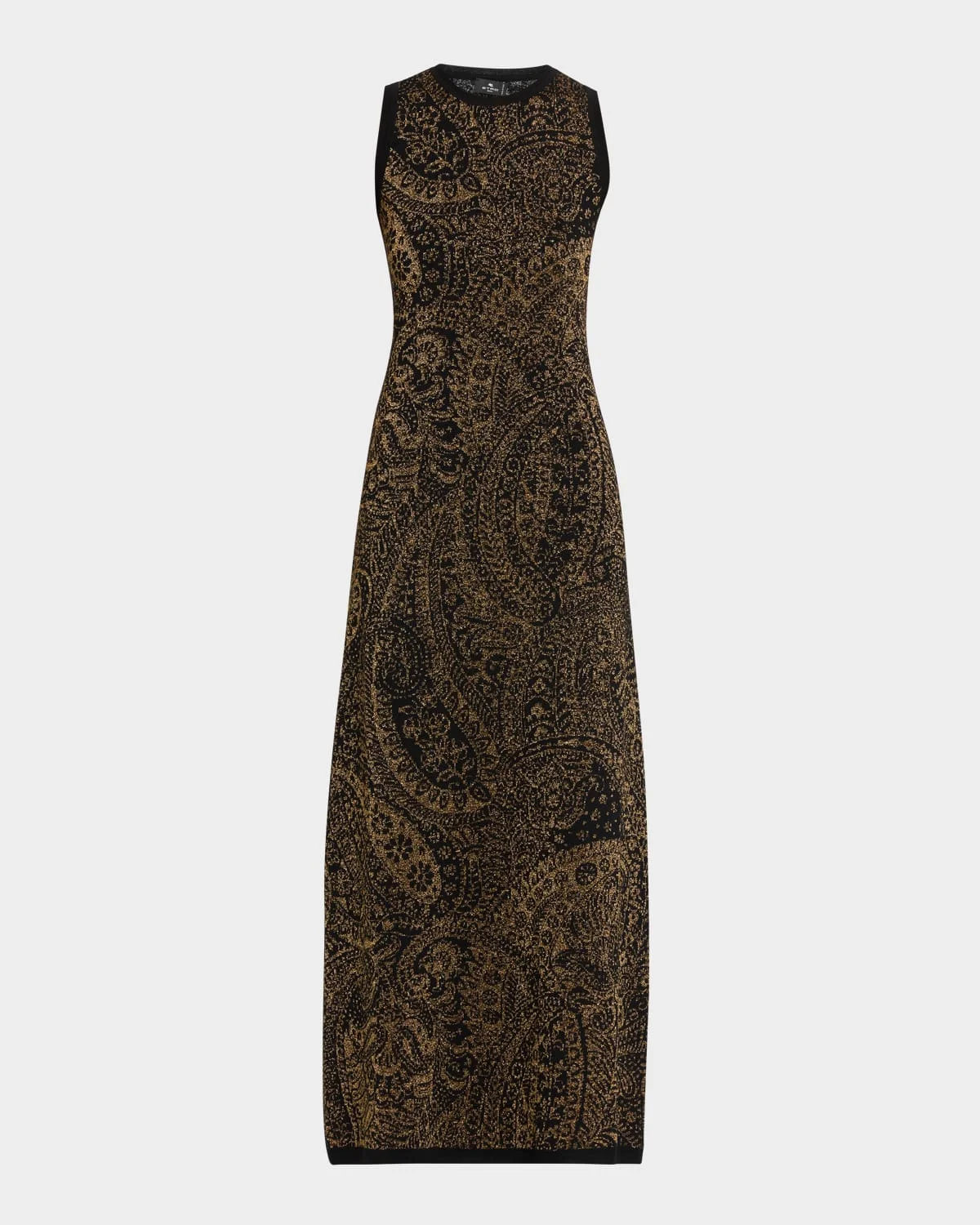 Metallic Paisley Knit Sleeveless Maxi Dress
