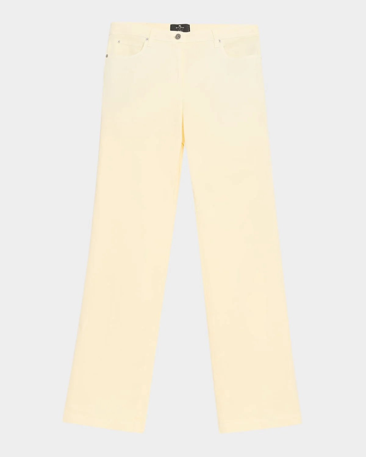 Etro straightleg jeans in white denim Midrise; sits high on the hip Fivepocket style; embroidered back pocket Relaxed fit Full length Button/zip fly; belt loops Cotton/elastane Professional cleaning recommended Made in Italy
