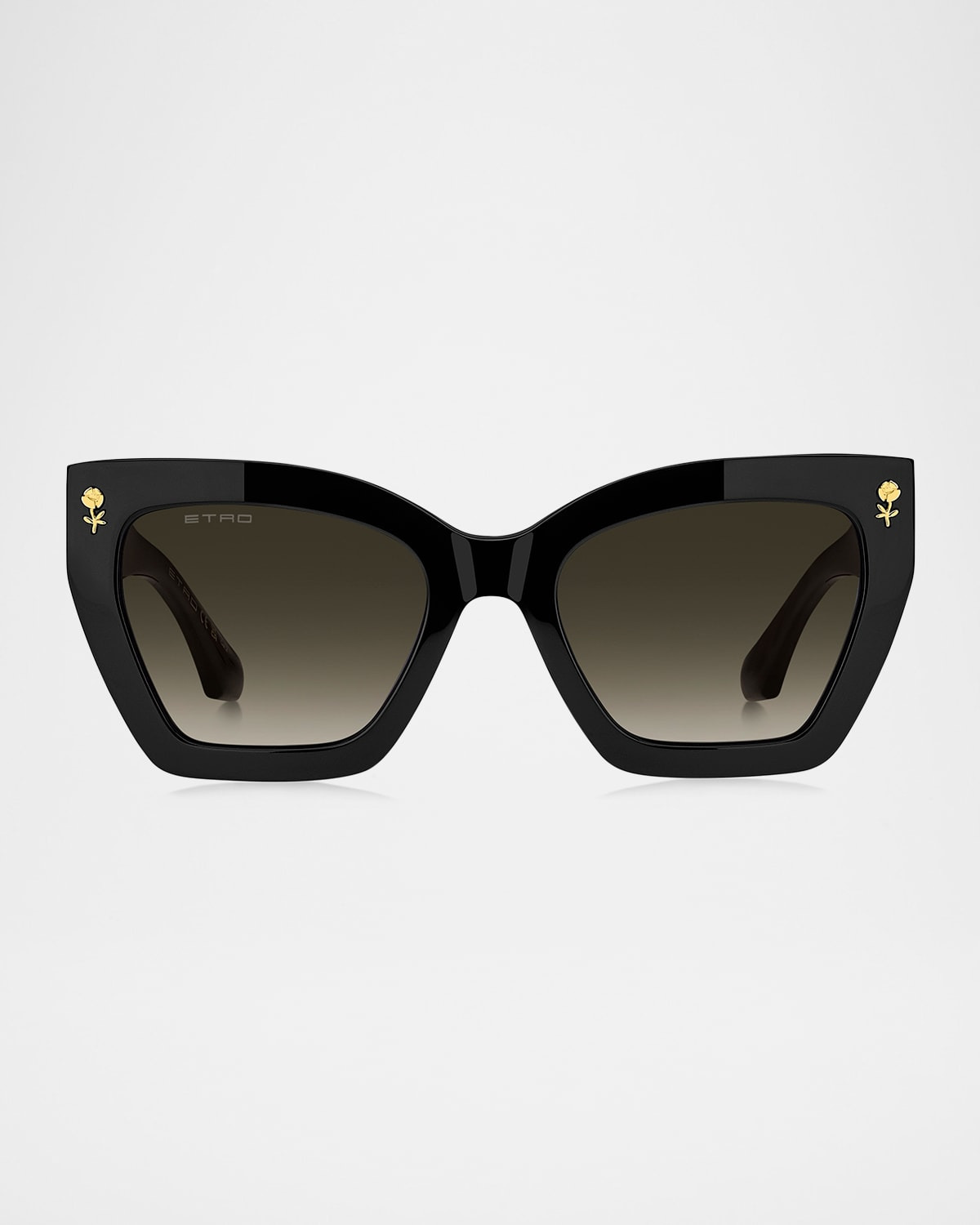 - Etro rectangle sunglasses in acetate - Eye/bridge/temple (in mm): 55-21-145 - Gradient lenses - Saddle nose bridge - Wide, tapered arms - Logo printed at the temples - Acetate - Wipe clean - 100% UVA/UVB protection - Imported - Proposition 65 warning for California residents