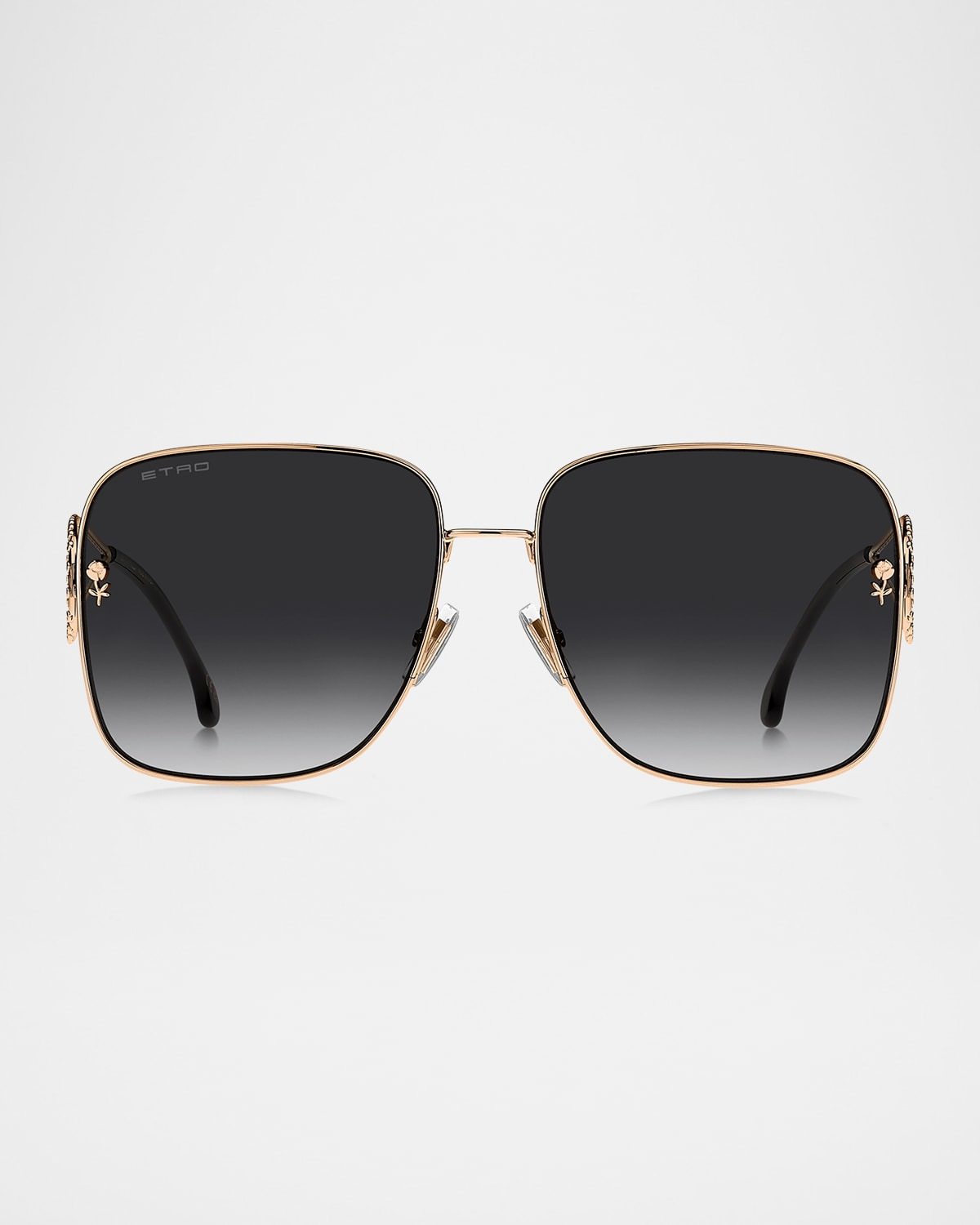 - Etro square sunglasses in metal - Eye/bridge/temple (in mm): 61-16-145 - Gradient lenses - Adjustable nose pads - Thin, tapered arms - Capped earpieces - Logo printed at the temples - Metal - Wipe clean - 100% UVA/UVB protection - Made in Italy - Proposition 65 warning for California residents