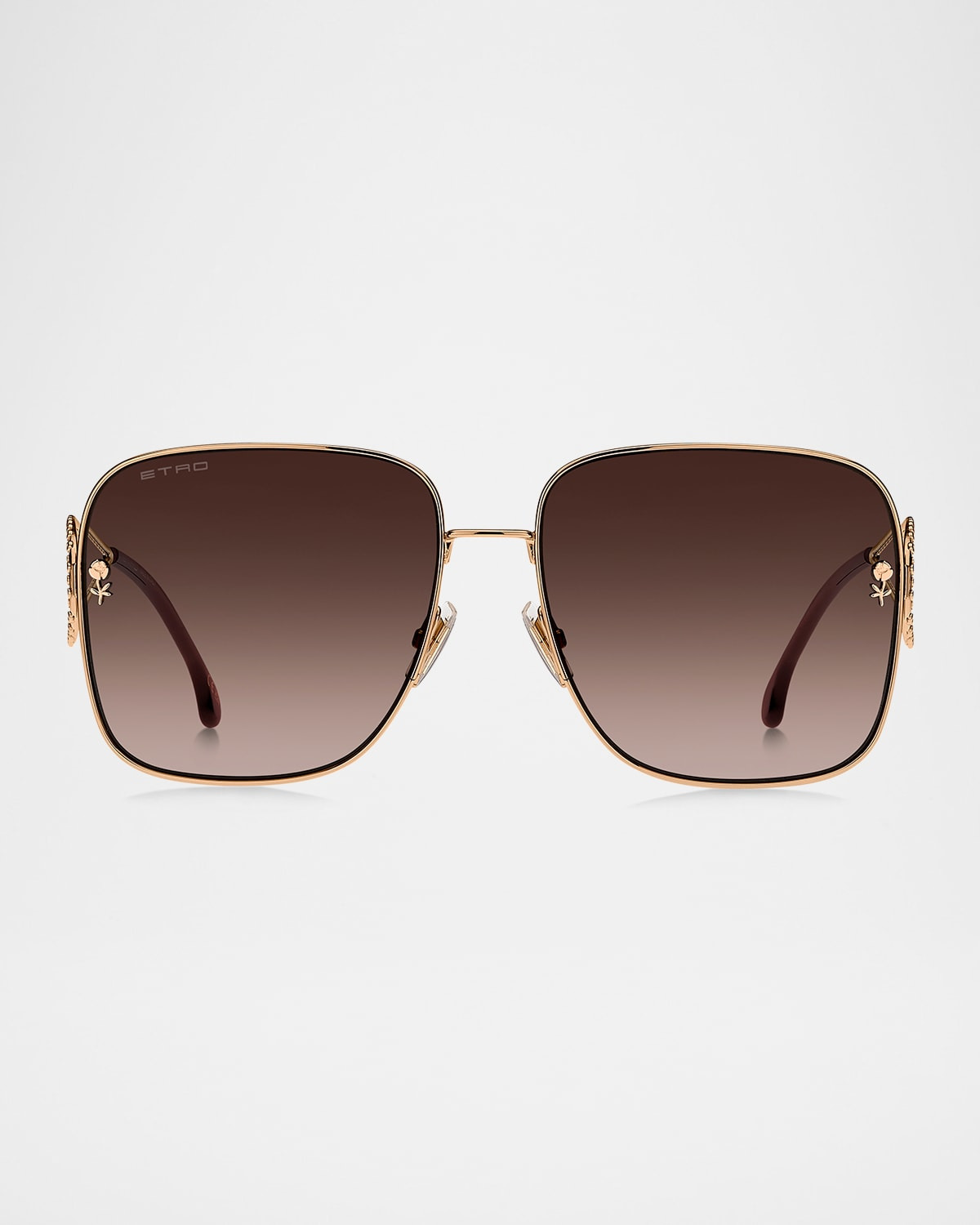 - Etro square sunglasses in metal - Eye/bridge/temple (in mm): 61-16-145 - Gradient lenses - Adjustable nose pads - Thin, tapered arms - Capped earpieces - Logo printed at the temples - Metal - Wipe clean - 100% UVA/UVB protection - Made in Italy - Proposition 65 warning for California residents