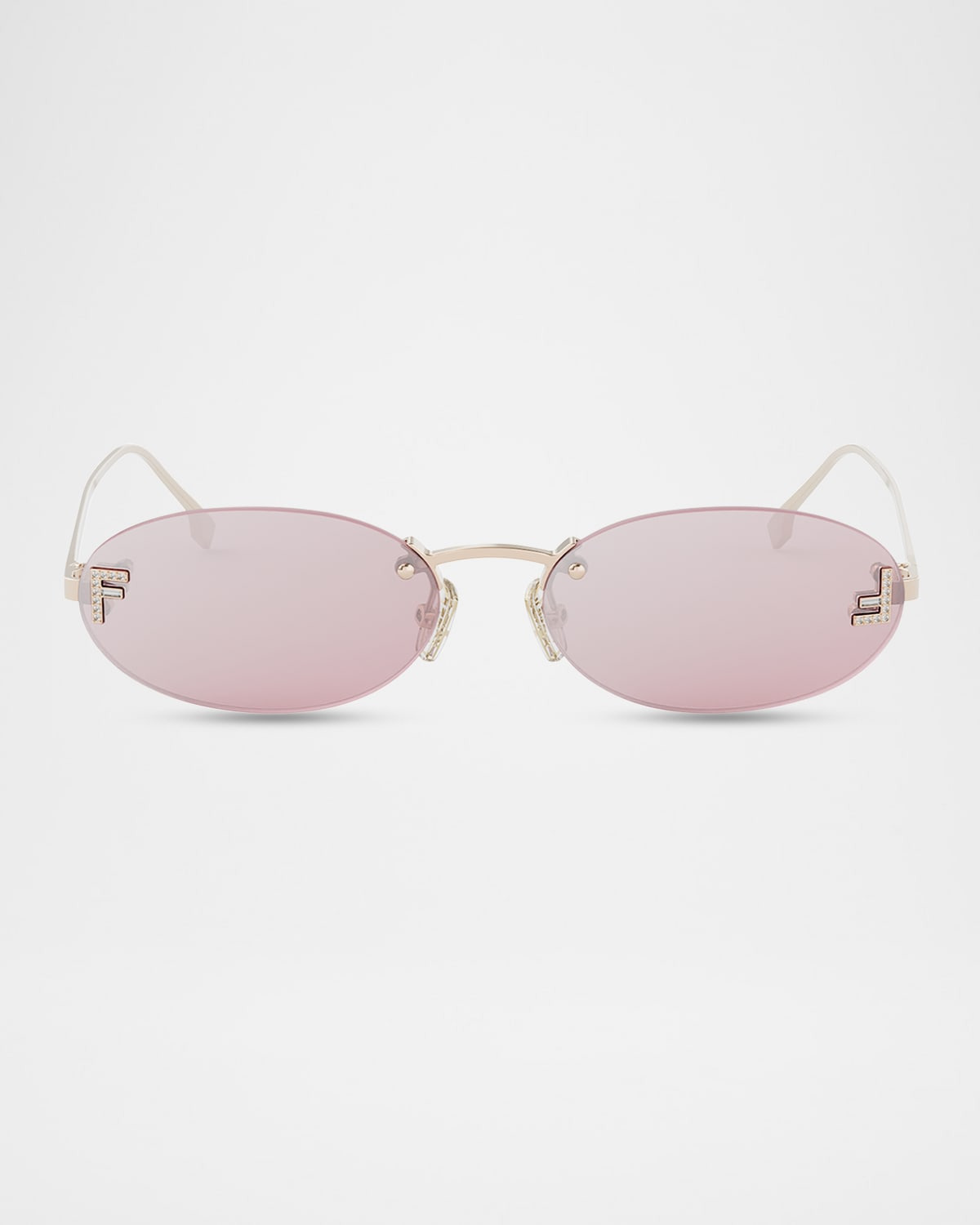 - Fendi rimless oval sunglasses in metal - FF crystals on the front side of the lenses - Lens/bridge/temple (in mm): 54-15-135 - Solid-color lenses - Adjustable nose pads - Thin, tapered arms - Hand wash - 100% UVA/UVB protection - Made in Italy - Proposition 65 warning for California residents - This product contains perfluoroalkyl and polyfluoroalkyl substances (PFAS). For more information, please visit the manufacturer’s website.