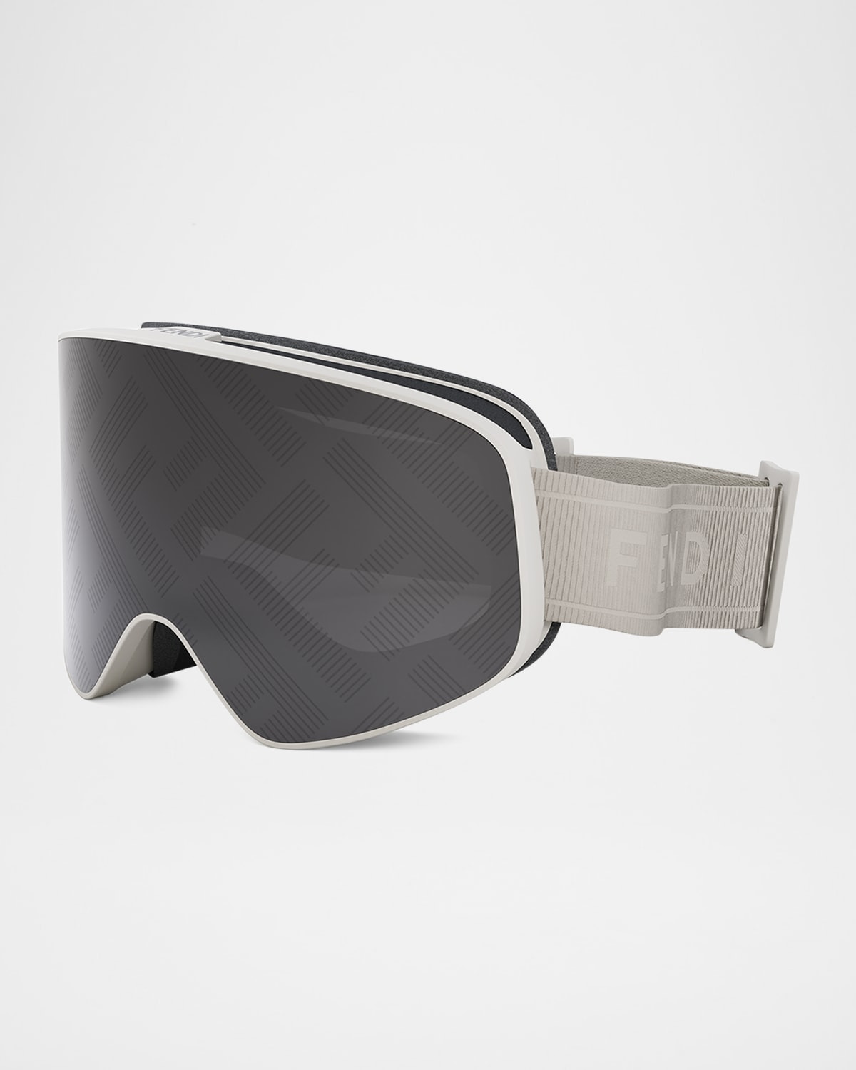 - Fendi rectangle ski mask in plastic, nylon, and polyamide - Solid lense; signature FF logo - Saddle bridge - Fendi logo on adjustable elastic band - 100% UVA/UVB protection - Made in Italy - Proposition 65 warning for California residents - This product contains perfluoroalkyl and polyfluoroalkyl substances (PFAS). For more information, please visit the manufacturer’s website.