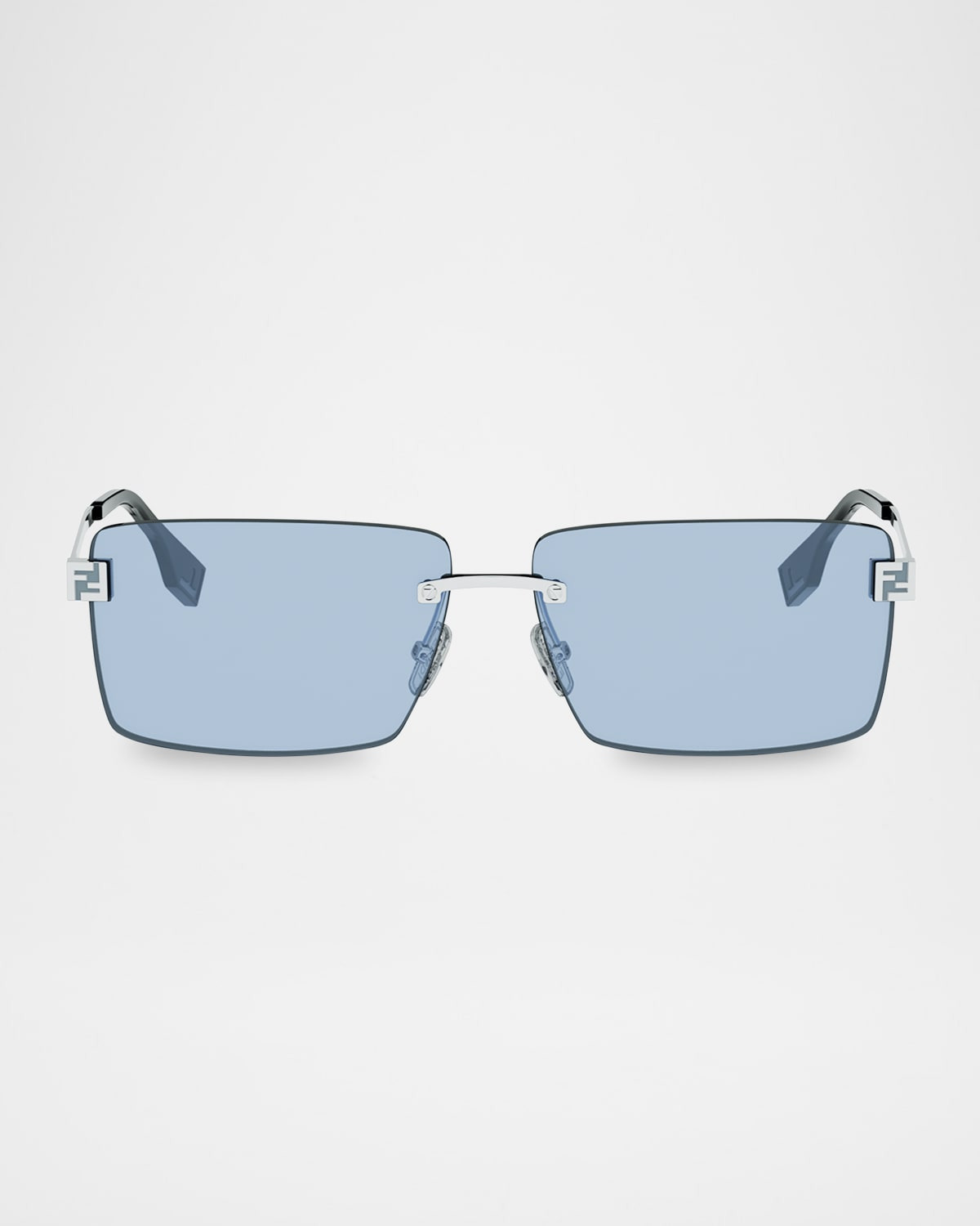 Men's Fendi Sky Rimless Metal Rectangle Sunglasses