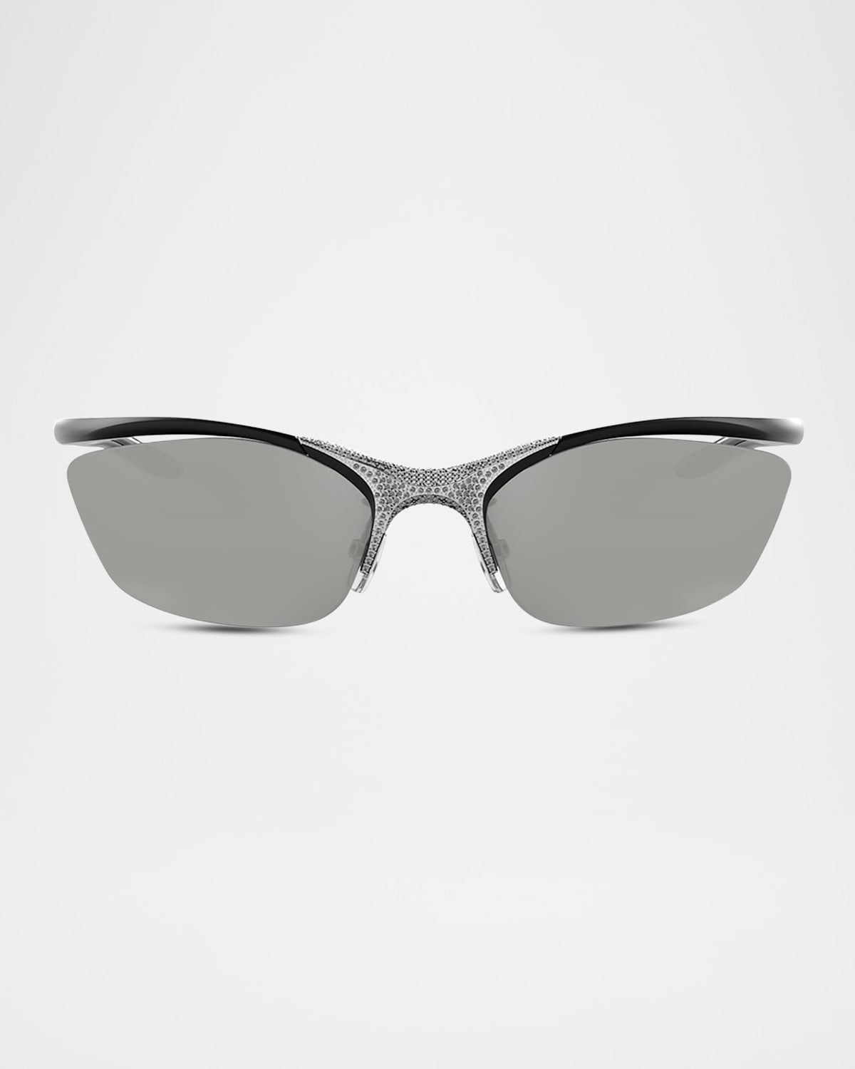 - Fendi "Signature" semi-rimless cat-eye sunglasses embellished with crystals - Eye/bridge/temple (in mm): - 62.4-13-125 - Mirrored silver lenses - Adjustable nose pads - Thin, tapered arms - 100% UVA/UVB protection - Made in Italy - Proposition 65 warning for California residents