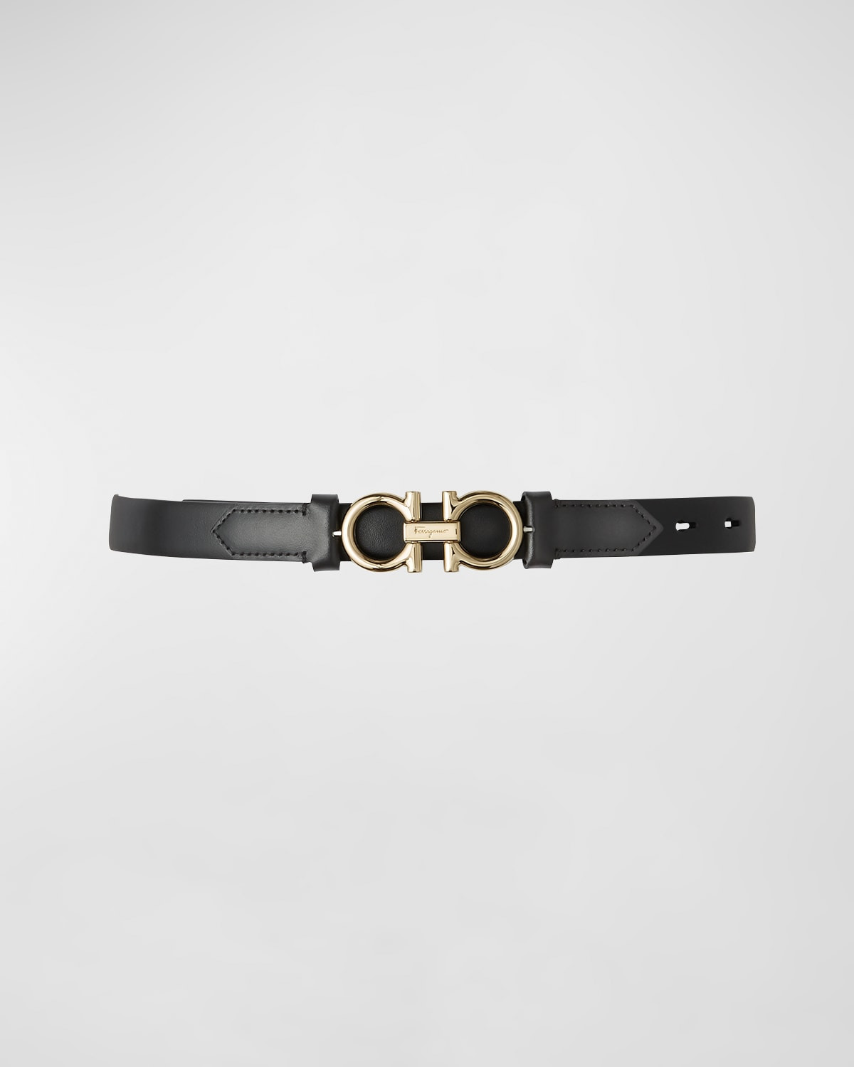 Ferragamo belt in calf leather. Signature doubleGancini buckle. Made in Italy.