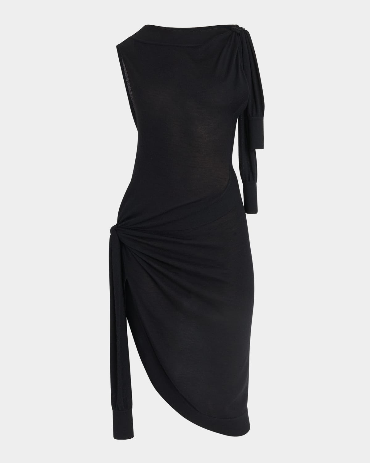Knotted Sleeveless Silk-Cotton Knit Midi Dress