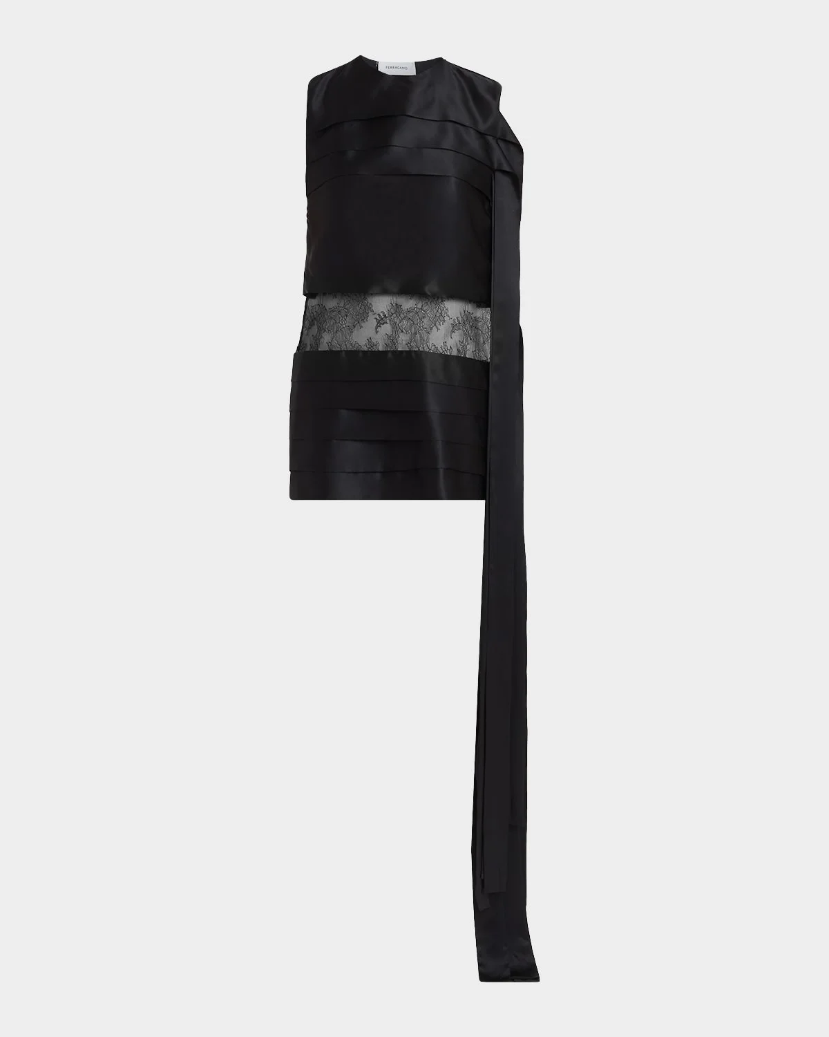 With show-stopping couture construction and retro charm, this dress from Ferragamo & nbsp;features layers of horizontal tiered silk that gracefully drape across the body and fall & nbsp;to maxi fringe, separated with a delicate sheer lace waist panel Round neckline Sleeveless Sheath silhouette Mini length Invisible side & nbsp;zip Silk Lining: Nylon/silk Professional cleaning recommended Made in Italy SIZE & FITModel measurements: 5 & apos;10" tallModel is wearing a US size 4/Small