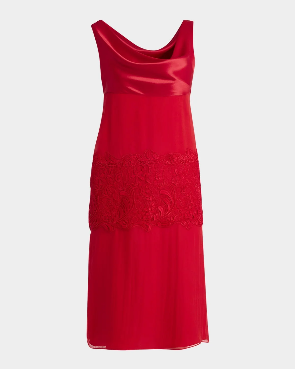 lace-Panel Silk Chiffon Midi Dress