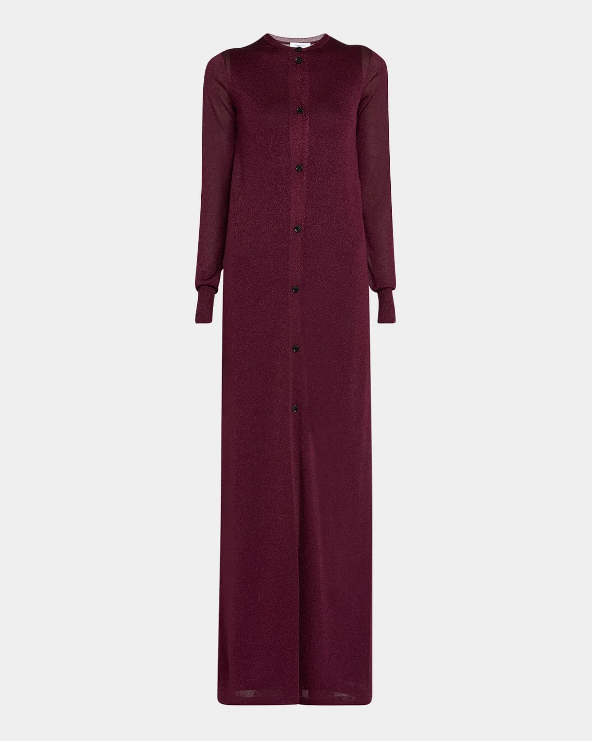 - Ferragamo metallic knit cardigan - Crew neckline; button front - Long sleeves - Straight fit - Long length - Viscose/nylon/polyamide - Hand wash - Made in Italy - Model is 5'10"/177cm.