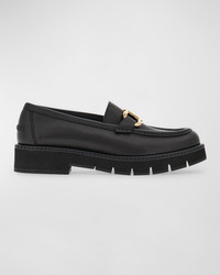 - Ferragamo "Maryan" calf leather casual loafers with golden Gancini bit strap - 0.75 in / 20 mm flat chunky heel - Round moc toe - Notched vamp - Slip-on style - Lugged rubber outsole - Lining: Goat leather/leather - Professional cleaning recommended - Made in Italy - Size Note: Item runs small, consider ordering a size up. - Shipping - Direct from Vendor, usually ships within 7 business days.