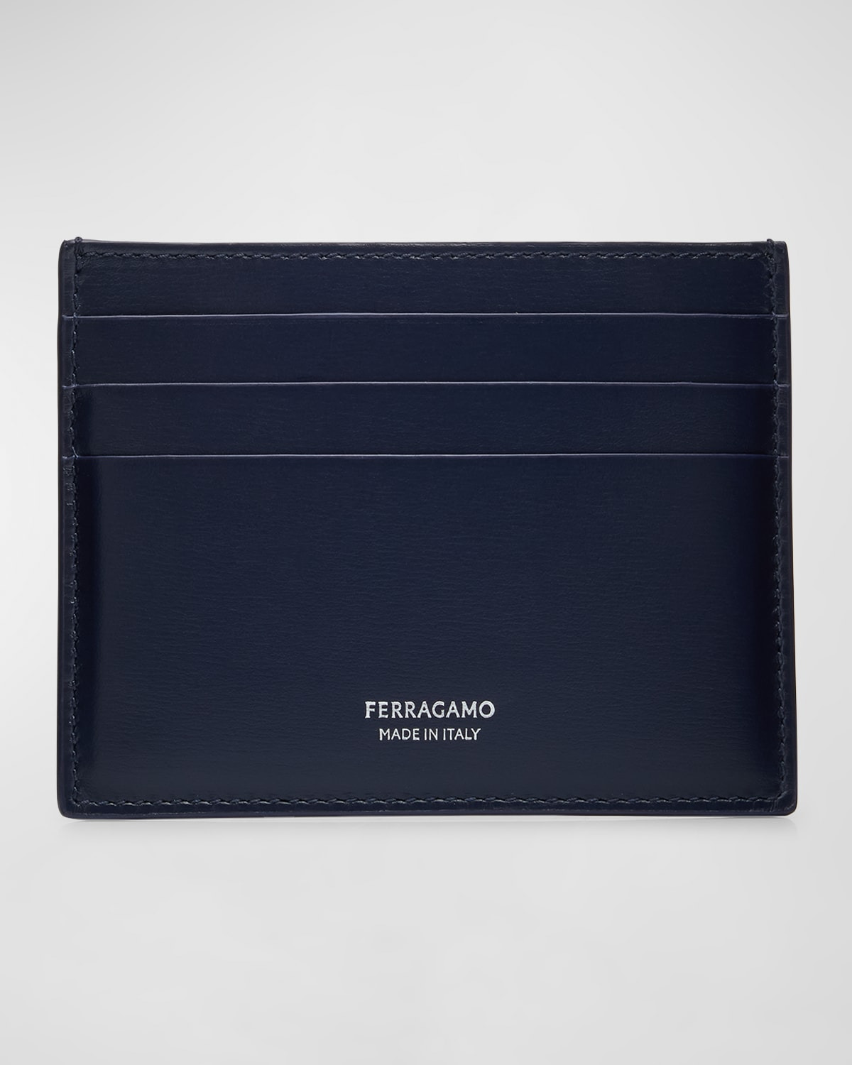 - Ferragamo Classic card case in hammered calf leather - Foiled logo on the front - Six card slots - One central compartment - Approx. 3.1"H x 3.9"W - Made in Italy