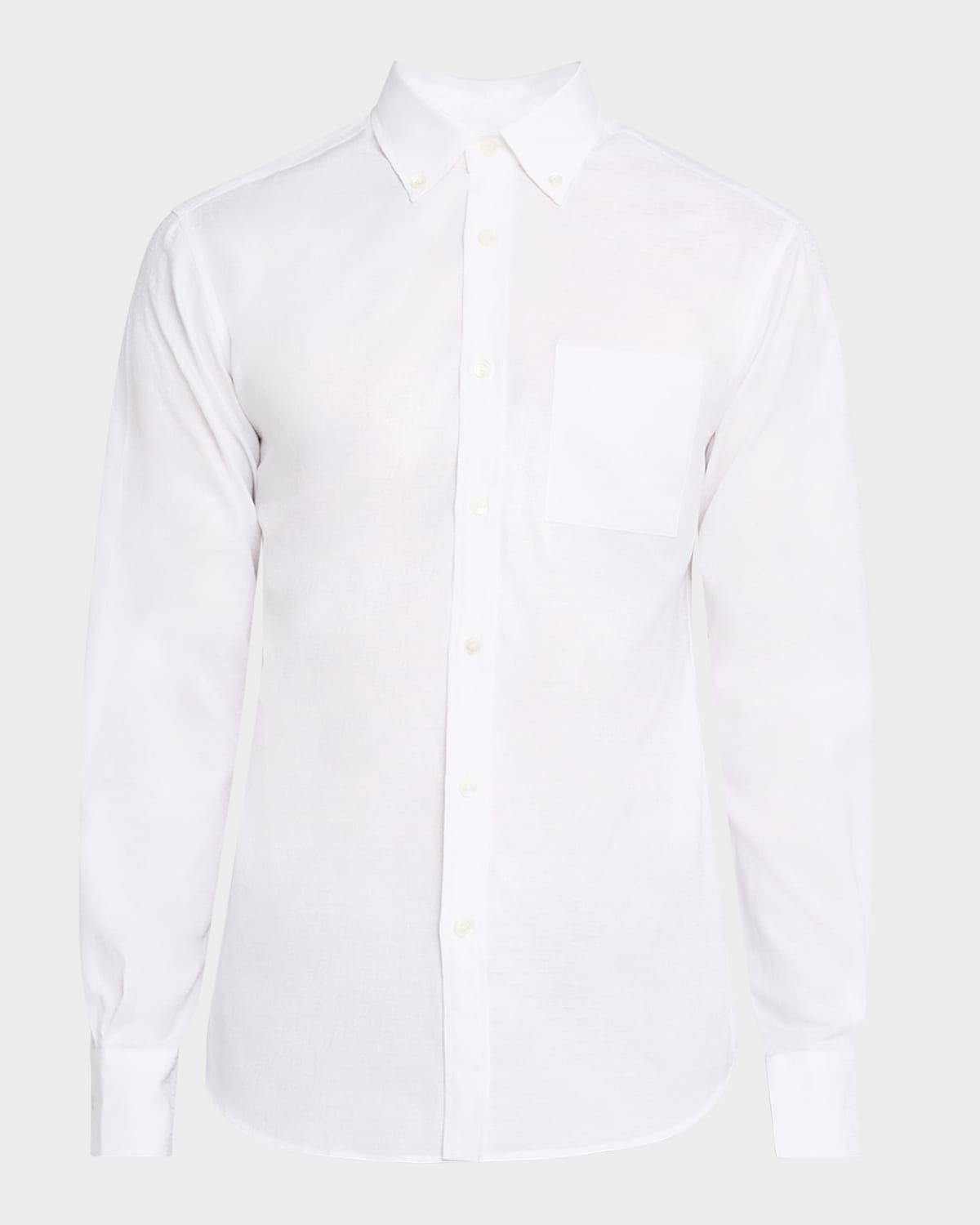 - Ferragamo sport shirt in signature Gancio jacquard - Buttoned point collar - Buttoned placket - Chest patch pocket - Long sleeves - Squared barrel cuffs - Yoked back shoulders - Shirttail hem - Cotton - Dry clean - Made in Italy
