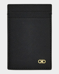 - Ferragamo card case in hammered calf leather highlighted with micro Gancio hardware - Gold-tone money clip - Foiled logo on the back - Two card slots - Approx. 7.2"H x 4.1"W - Made in Italy