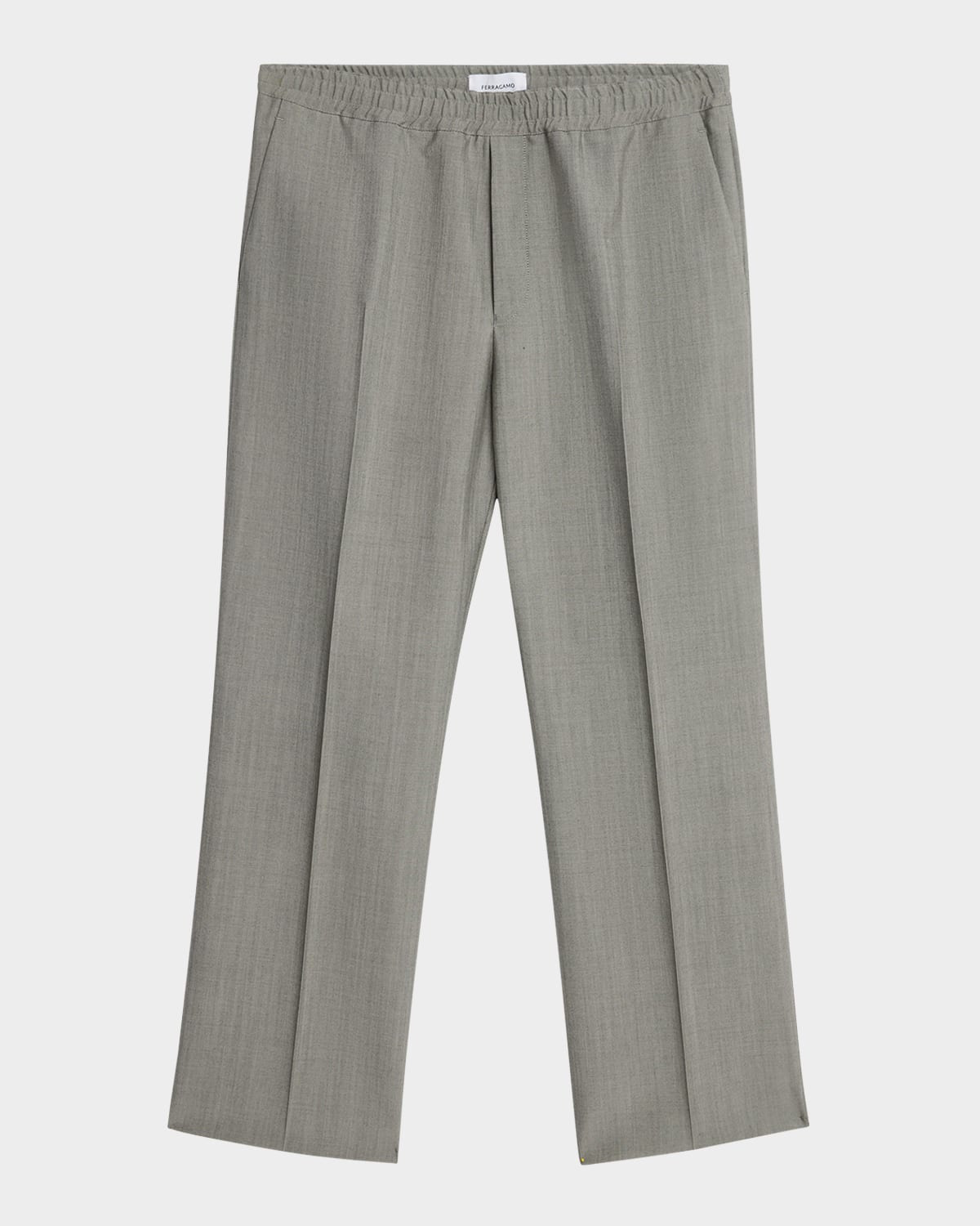 - Ferragamo trouser in two-tone nailhead weave - Elasticized waist - In-seam side pockets - Back welt pocket - Pressed creases on legs - Full length - Relaxed fit - Pull-on style - Virgin wool/mohair - Lining: Cotton - Dry clean - Made in Italy