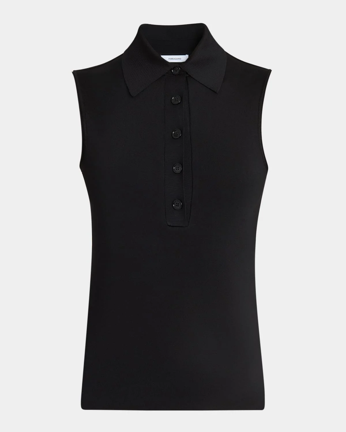 - Ferragamo polo top in viscose knit - Spread collar; five-button front - Sleeveless - Fitted - Pullover style - Viscose/nylon/polyamide/elastane - Dry clean - Made in Italy