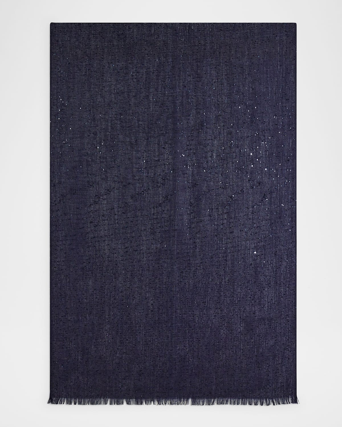 - Ferragamo "Star" scarf in silk featuring sequin embellishments - Approx. 78"L x 27"W - May be styled multiple ways - Tonal embroidered logo signature - Eyelash fringe ends - Silk - Made in Italy