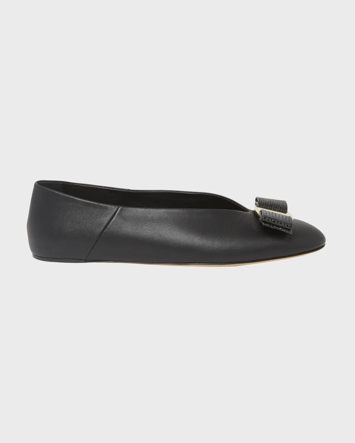 - Ferragamo "Vanna" calf leather ballerina flats. - 0.17 in / 5 mm flat heel. - Signature Vara bow at round toe. - Golden logo-engraved buckle. - Slip-on style. - Padded footbed. - Leather sole. - Lining: Leather. - Professional cleaning recommended. - Made in Italy.