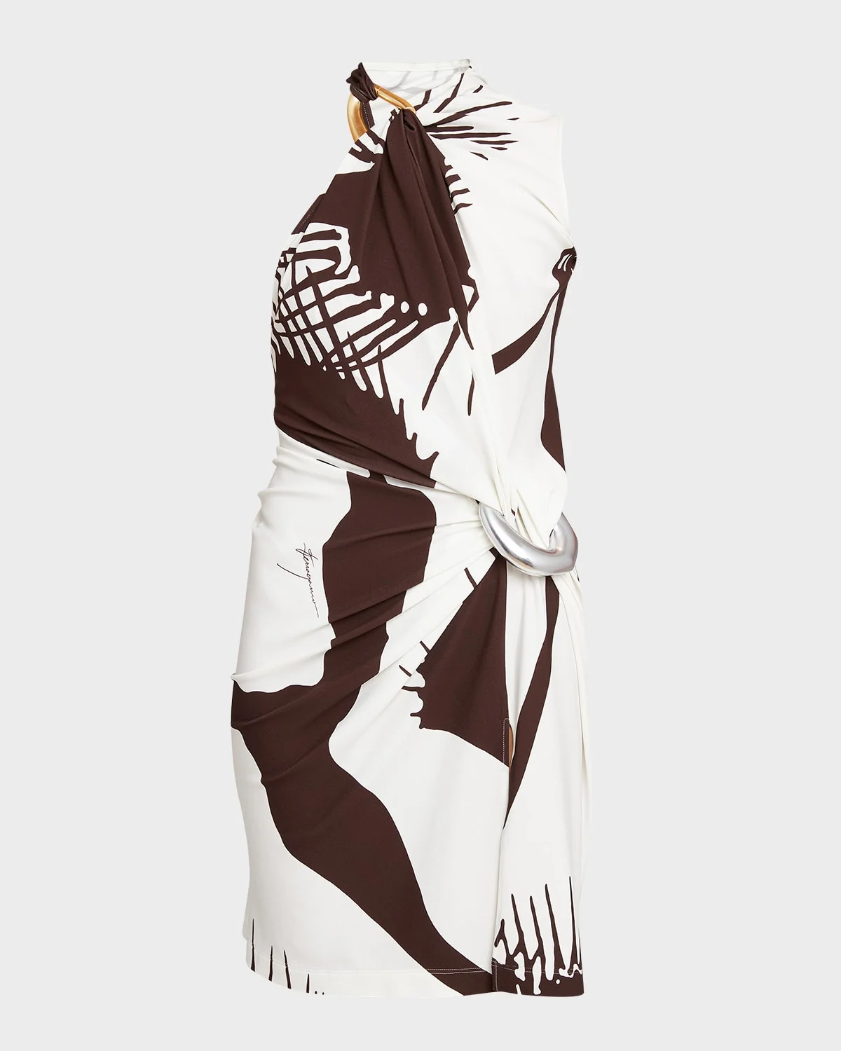 Venus-Print Gathered-Rings Sleeveless Jersey Mini Wrap Dress