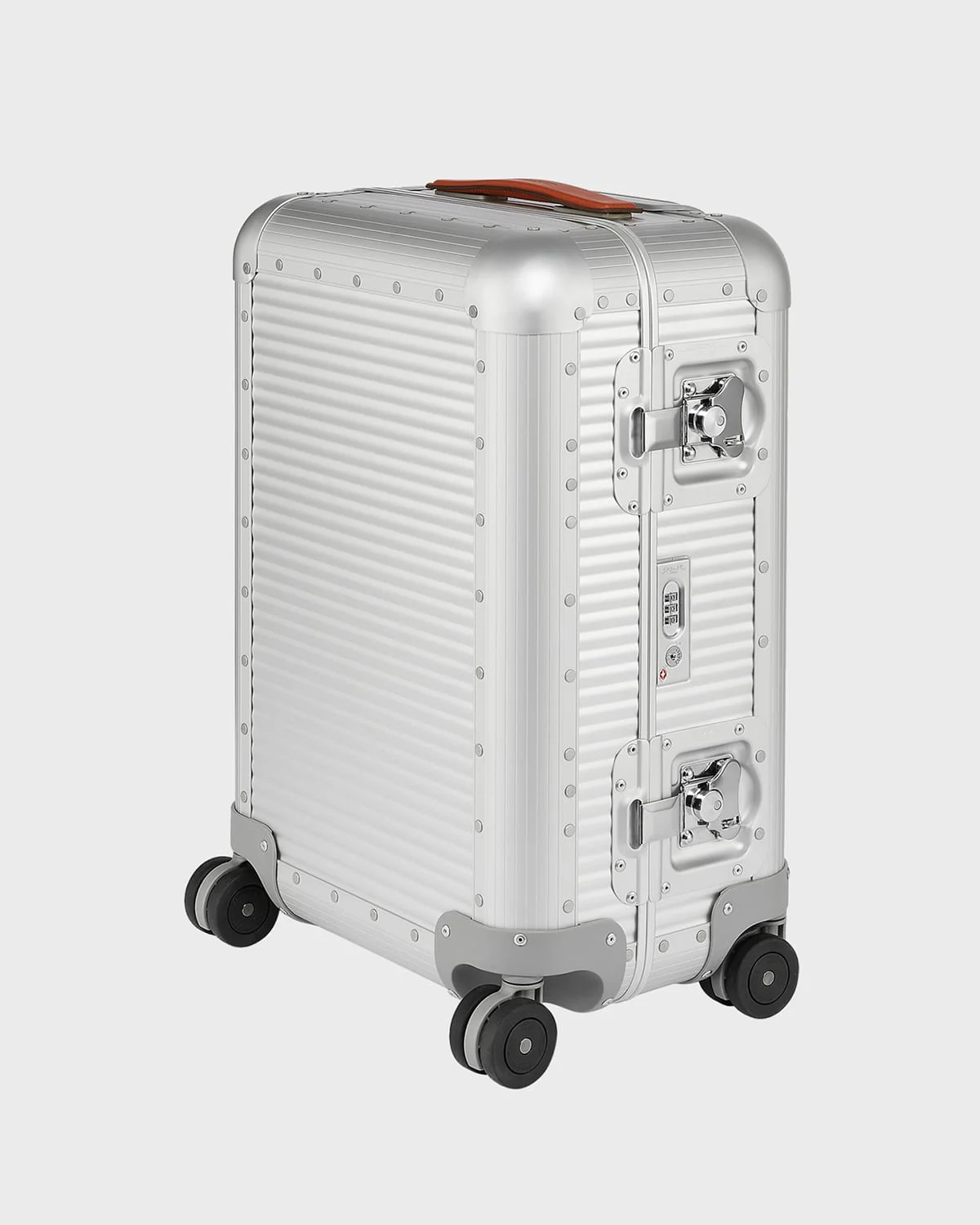 Ideal for two to three day journeys Hardsided luggage crafted of aluminum, leather, and polyester Approx. 16"W x 10"D x 22"T Top handle Butterfly closures Side handle Integrated TSA lock Four dual wheels Interior removable padded lining Interior mesh pocket Interior shirt holder Interior straps Item Weight: 12.0 lbs Lining: Polyester Trim: Leather Made in Italy