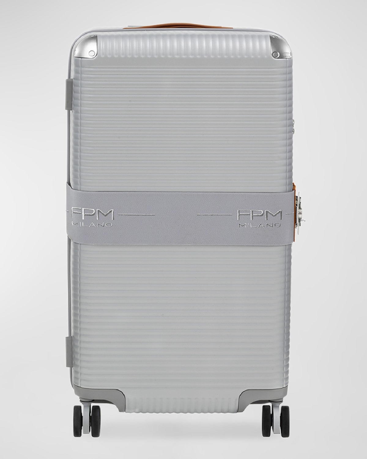 Bank Zip Deluxe-a meticulously engineered solution that epitomizes versatility and refinement. This collection stands out with its innovative zip closure, meticulously designed for discretion and water resistance. Effortlessly secured with an elastic band, it features the iconic aluminum butterfly lock, a signature hallmark of the esteemed FPM Milano brand. Designed by the renowned artist Marc Sadler; each suitcase shows his signature on the bottom Spinner luggage crafted of polycarbonate and leather Aluminum reinforced corners Leather top and side handles Impactresistant external wave texture Water resistance external coated zipper Dual wheels Aluminum rivet Combination lock in the middle of the suitcase Removable soft lining Nylon compression straps and a practical divider Approx. 21.6"W x 7.8"D x 15.7"T Item Weight (Lbs.): 7.9 Lining: Polyester Spot clean Trim: Leather Made in Italy
