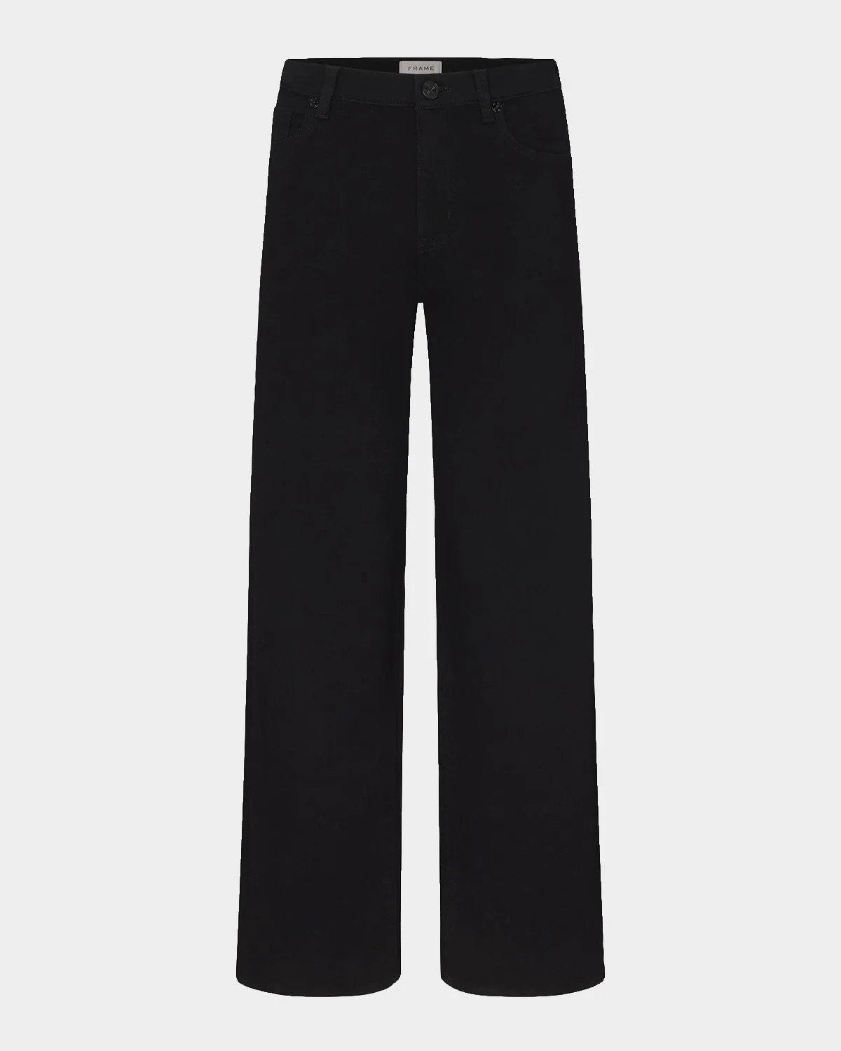 - FRAME "Le Slim Palazzo" wide-leg jeans finished with a raw hem in black stretch-denim - High rise - Five-pocket style - Slim fit - Full length - Button/zip fly; belt loops - Cotton/polyester/modal - Machine wash inside out - Imported