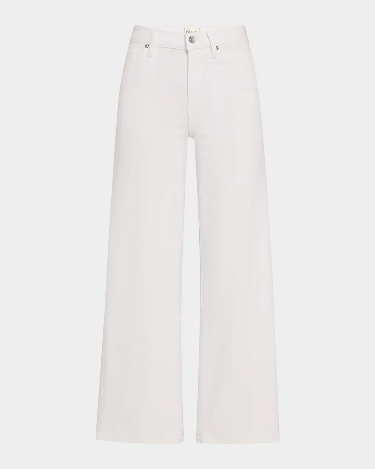 - FRAME "Le Slim Palazzo" wide-leg jeans in crisp white denim - Mid-rise; sits high on the hip - Five-pocket style - Slim fit - Full length - Button/zip fly; belt loops - Cotton/lyocell/polyester - Made in USA