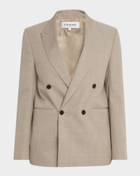 - FRAME blazer with a double-breasted front - Peak lapels - Long sleeves - Waist jet pockets - Interior pocket - Short length - Wool - Dry clean - Imported