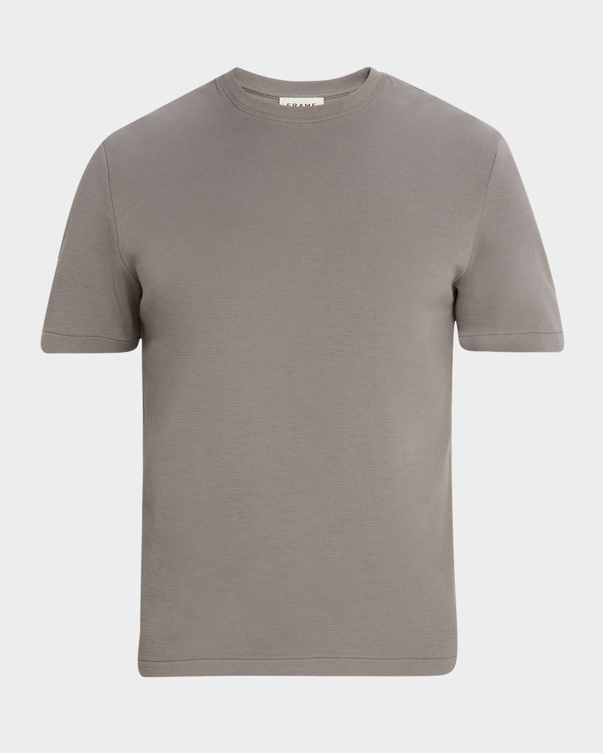 - FRAME T-shirt in double-knit duo fold design - Super soft on the inside with textural depth on the outside - Crew neckline - Short sleeves - Pullover style - Cotton - Imported - Model is 6'1"/185cm.