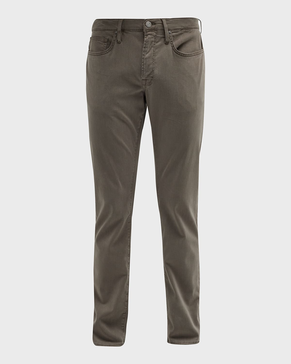 - FRAME "L'Homme" pants in a solid stretch fabric - Approx. 10” rise; 33” inseam; 14” leg-opening - Regular rise - Five-pocket style - Full length - Slim fit through straight legs - Button/zip fly; belt loops - Lyocell/modal/elasterell-p - Machine wash cold, machine wash tumble dry, wash inside out - Imported - Model is 6'1"/185cm.
