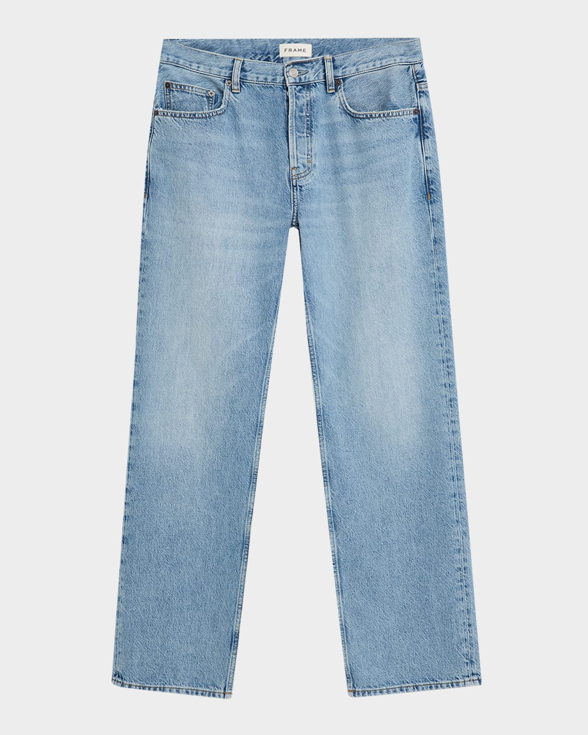 - FRAME jeans in cotton denim with fading - Regular rise - Flat front - Five-pocket style - Full length - Relaxed legs - Button/zip fly; belt loops - Cotton - Machine wash cold - Imported