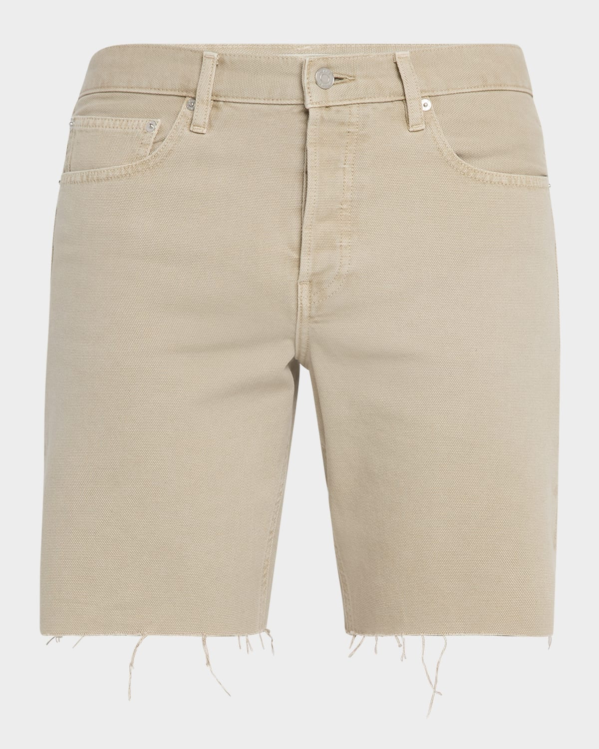 - FRAME shorts with a raw hem - Regular rise - Five-pocket style - Relaxed fit through relaxed legs - Button-zip front; belt loops - Cotton - Machine wash cold - Imported