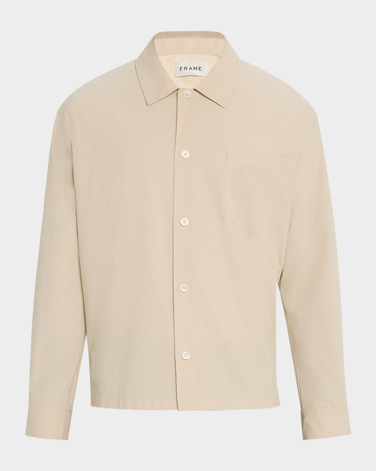 - FRAME sport shirt in solid seersucker - Classic spread collar - Button placket - Chest patch pocket - Long sleeves - Squared barrel cuffs - Yoked back shoulders - Straight hem - Classic fit - Cotton - Dry clean - Imported