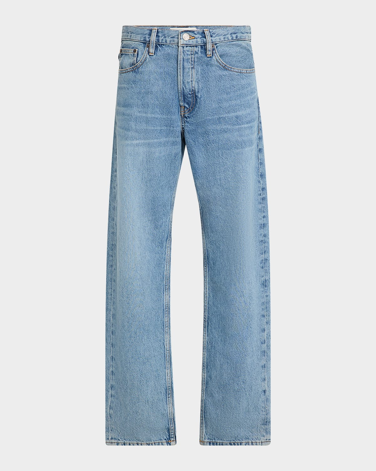- FRAME jeans in light-wash denim - Approx. 32" inseam; 11.5" rise; 15.3" leg opening; 18.3" knee - Regular rise - Five-pocket style - Full length - Straight legs - Button/zip closure - Cotton - Unlined - Machine wash cold - Imported - Model is 6'1"/185cm.