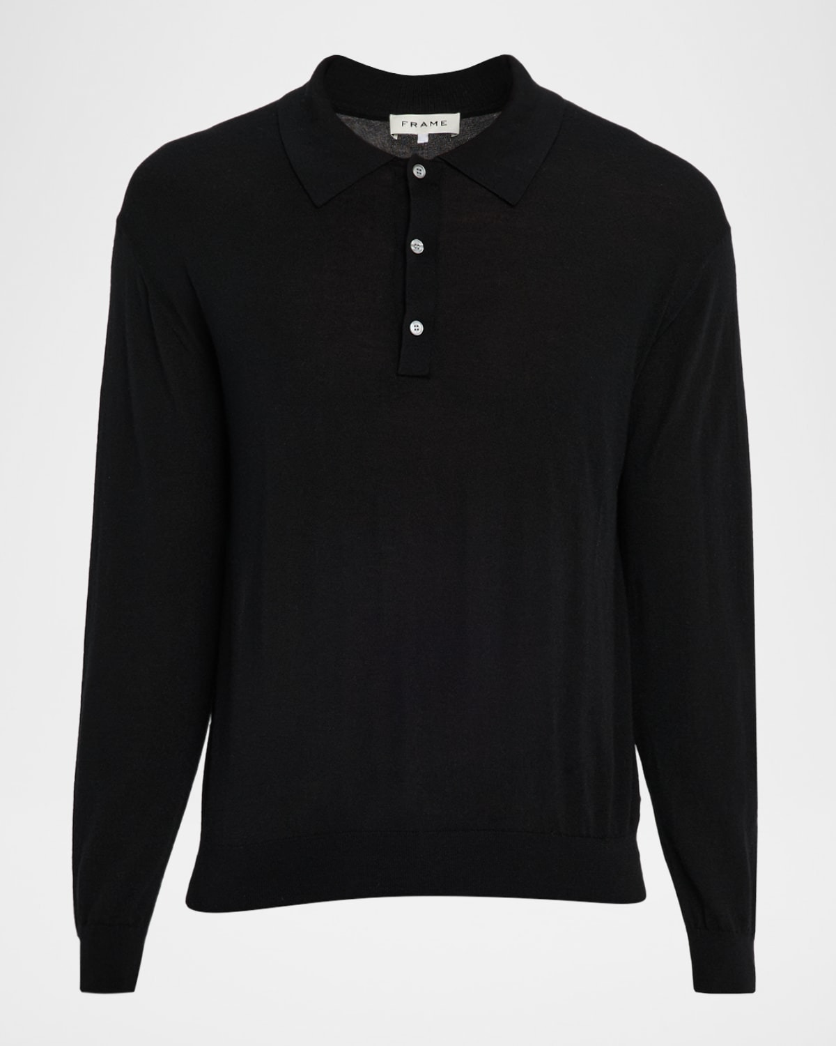 - FRAME polo sweater in a superfine wool and cashmere blend resulting in a soft handfeel - Spread collar - Three-button placket - Long sleeves - Ribbed cuffs and hem - Pullover style - Wool/cashmere - Dry clean - Imported