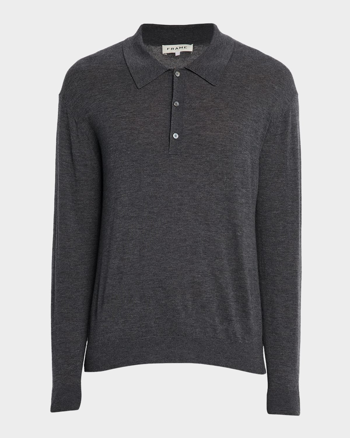 - FRAME polo sweater in a superfine wool and cashmere blend resulting in a soft handfeel - Spread collar - Three-button placket - Long sleeves - Ribbed cuffs and hem - Pullover style - Wool/cashmere - Dry clean - Imported