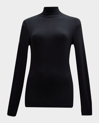 FRAME top in a fine ribbed knit Turtleneck Long sleeves Slim fit Hem sits at the hip Pullover style Modal/spandex Imported
