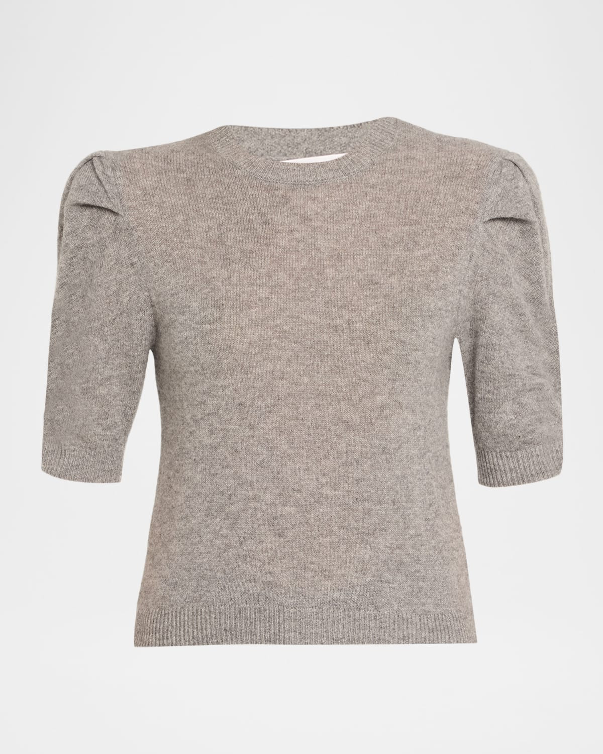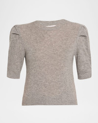 Ruched Sleeve Cashmere Sweater in Gris Heather