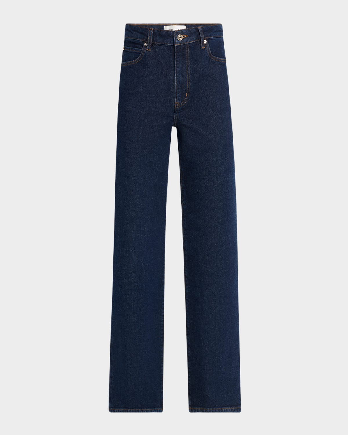 - FRAME "The Arrow" bootcut jeans in dark wash stretch- denim - Approx. 11.5" rise; 33" inseam - High rise - Five-pocket style - Fitted through the hip and thigh - Full length - Button/zip fly; belt loops - Cotton/elastane - Machine wash warm - Imported