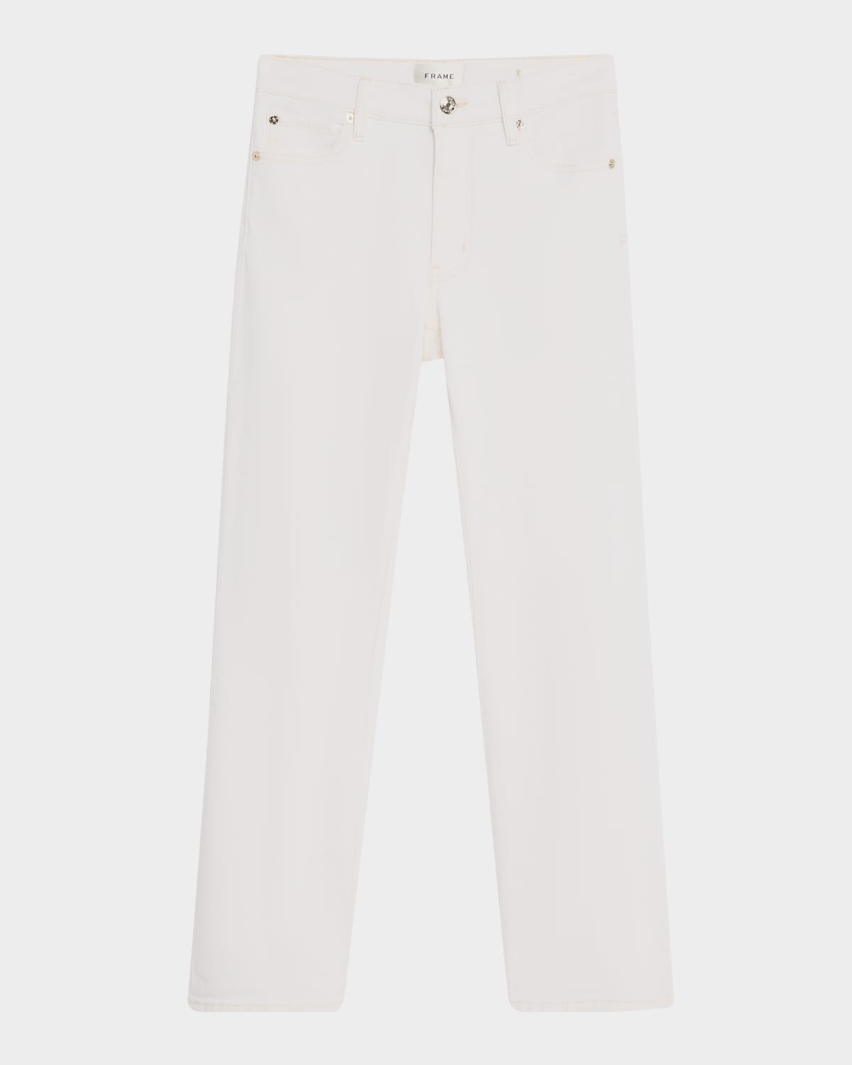 - FRAME "The Borrowed" comfort stretch denim pants - Mid rise - Straight legs - Ankle length - Five-pocket style - Button/zip fly; belt loops - Cotton/elastane - Machine wash cold, wash inside out - Imported