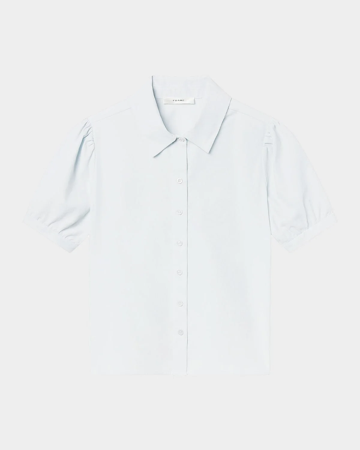 FRAME ultra-soft cotton blouse finished with puff sleeves Point collar Short sleeves with button cuffs Classic fit Hem falls to the hip Button-front & nbsp; Cotton Machine wash cold Imported SIZE & FITModel measurements: 5 & apos;10" tallModel is wearing a US size 4/Small
