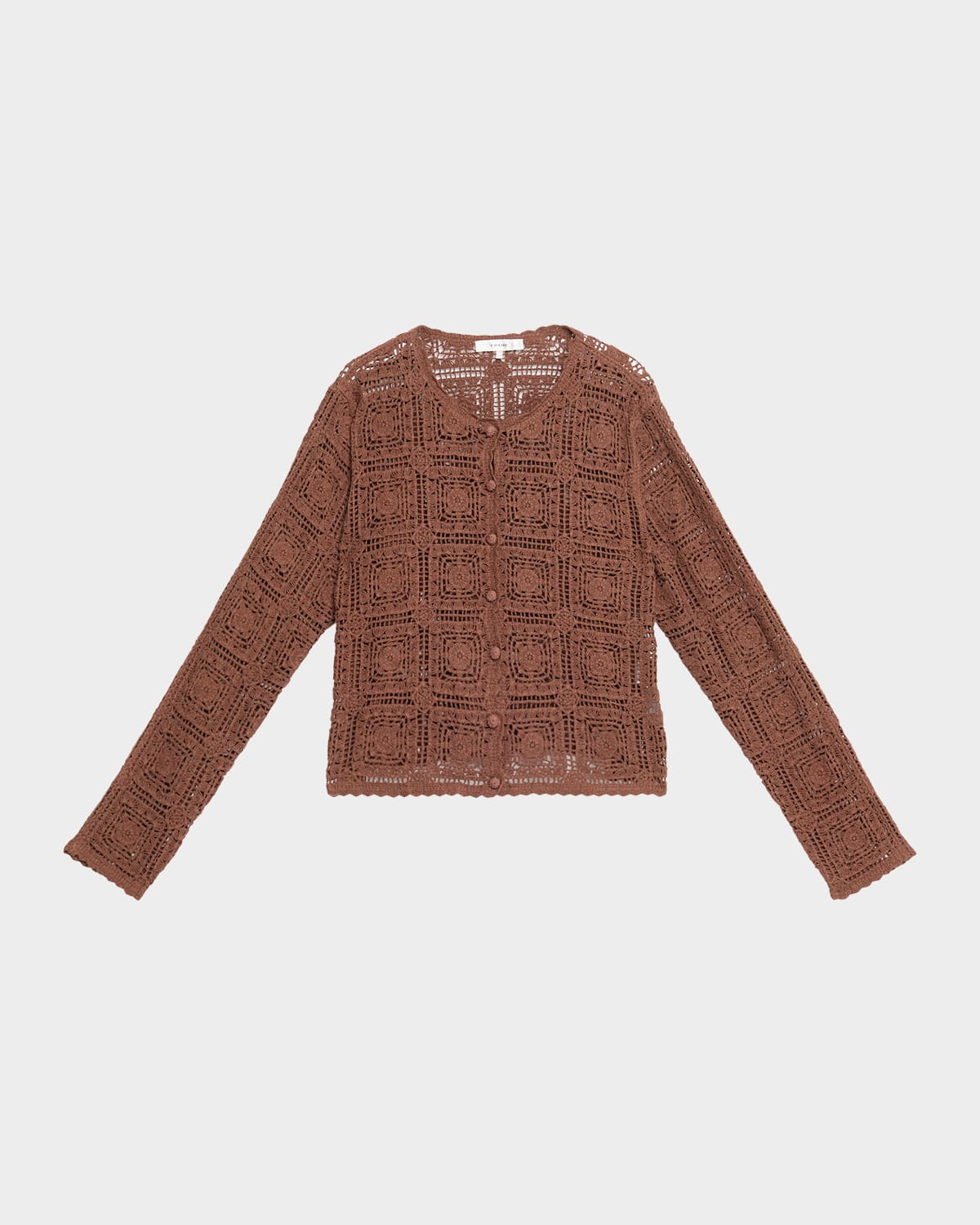 FRAME cotton crochet cardigan Scoop neckline Long sleeves Classic fit Hem sits at the hip Buttonfront Cotton Imported