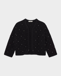 This FRAME jacket is knit from stretch wool and adorned with shimmering pearls for a vintageinspired silhouette. Threequarter sleeves Tailored fit Rounded hem Openfront Wool/nylon Dry clean Imported