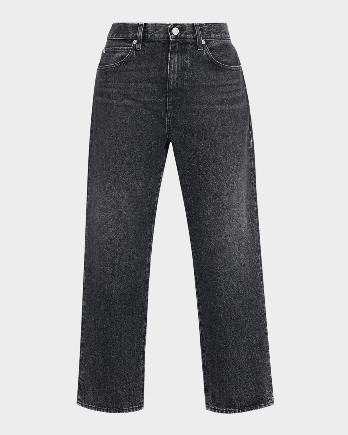 - FRAME "The Hang" straight-leg jeans in faded black denim - Approx. 27" inseam; 10.75" rise - Mid-rise; sits high on the hip - Five-pocket style - Relaxed fit - Ankle length - Button/zip fly; belt loops - Cotton - Machine wash inside out - Imported