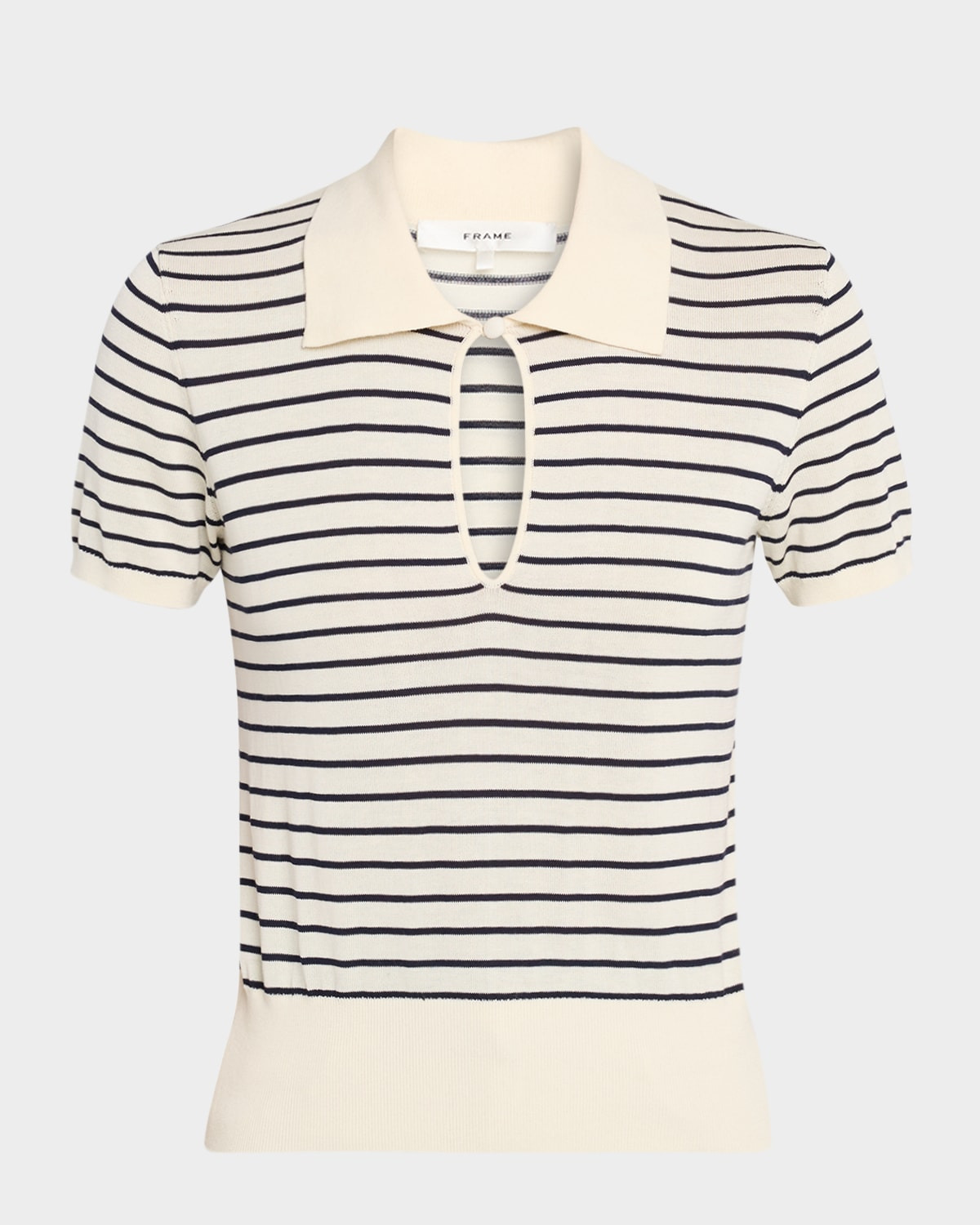 - FRAME striped knit polo elevated with a keyhole front - Point collar - Short sleeves - Classic fit - Hem sits at the hip - Modal/cotton - Dry clean - Imported