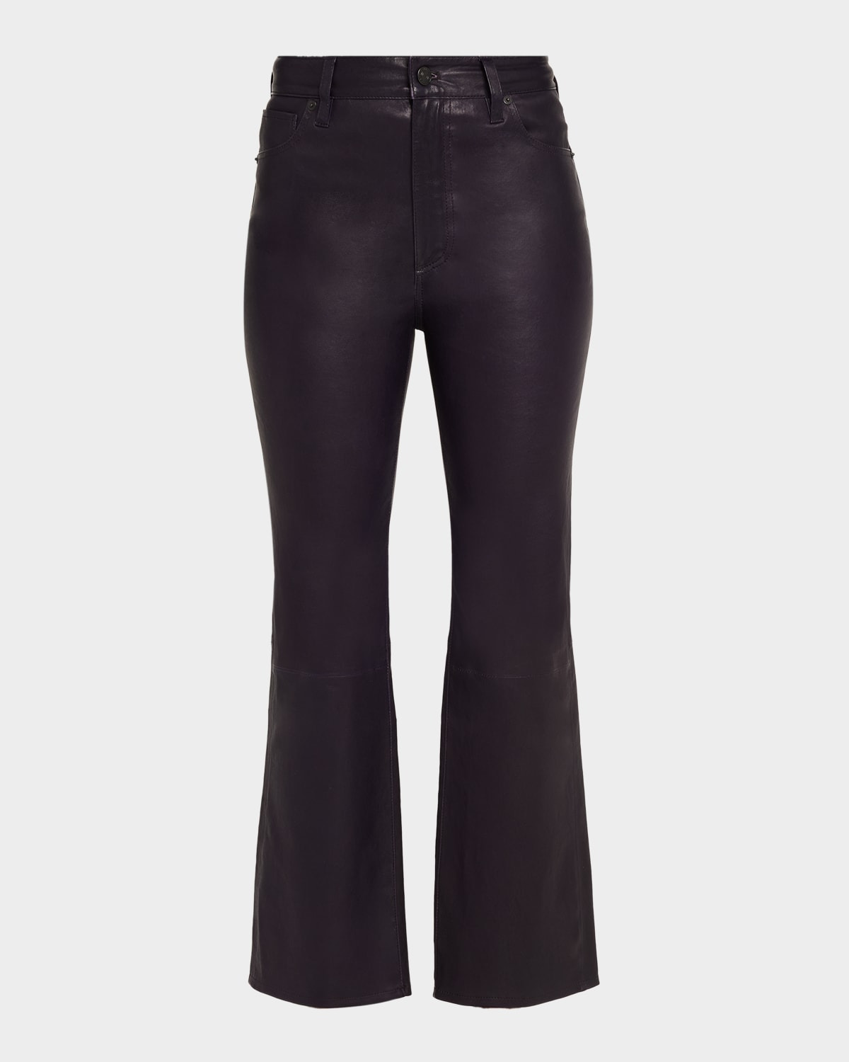 FRAME "The Leather Reboot Crop" jeans crafted from luxurious leather Approx. 11" rise; 27" inseam High rise Fivepocket style Fitted through the hip and thigh Cropped length Button/zip fly; belt loops Leather Professional cleaning recommended Imported