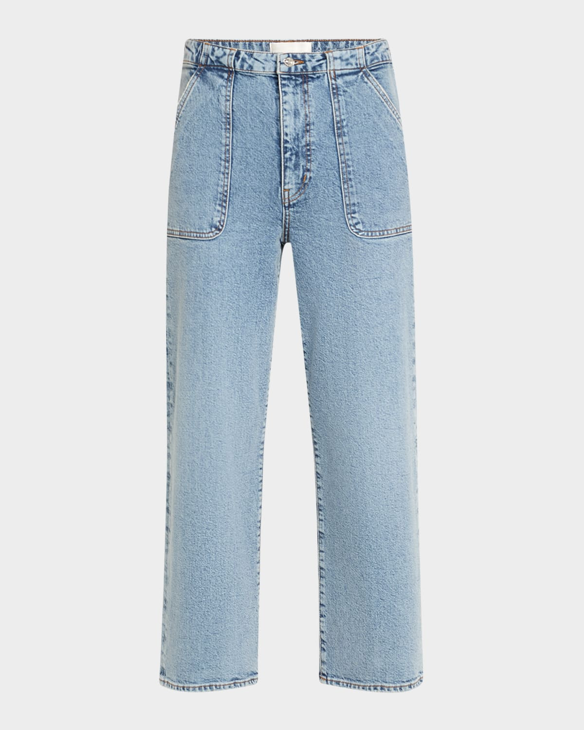 - FRAME "The Modern Pocket" jeans in light-wash denim - Approx. 11.8" rise; 27.5" inseam - High rise - Front and back patch pockets - Wide legs - Ankle length - Button/zip fly; belt loops - Cotton/elastane - Machine wash cold - Imported